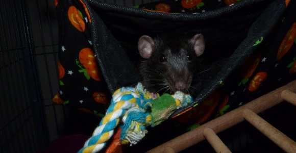 Cocoas favourite past time was getting peoples attention, probably because she always wanted to be out of the cage - she was a person rat. Her best way to get your attention was by spinning her wooden flowers, making the most noise she could.