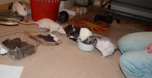 All the rats love playing in water, including Berry espcially when there was food involved.