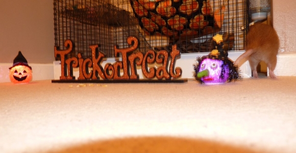 Whiskers on his 1st birthday jumping into his cage with his treat